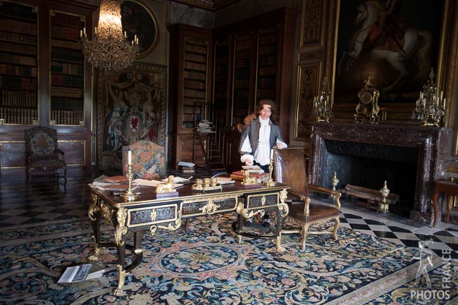 This wax figure is no longer on display and shows poet Jean de la Fontaine at work in an office.