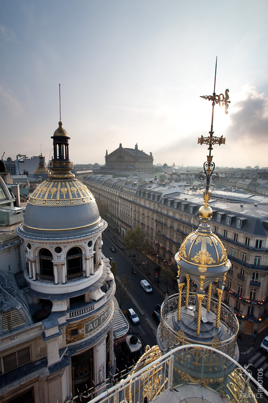 The printemps coupolas are best seen from the terrace on top. It provides a splendid view on Paris. The large building in the end is the Opera Garnier.